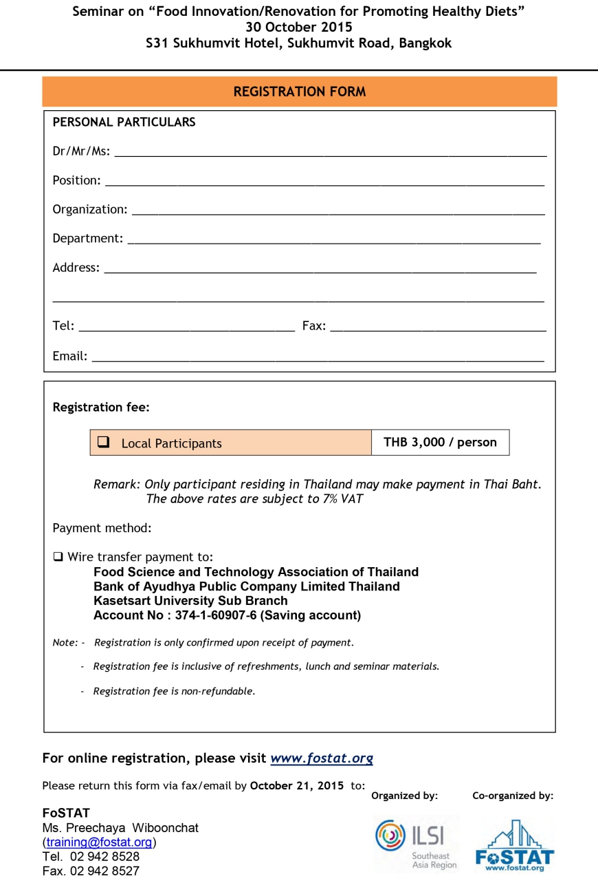 Remark: Only participant residing in Thailand may make payment in Thai Baht.