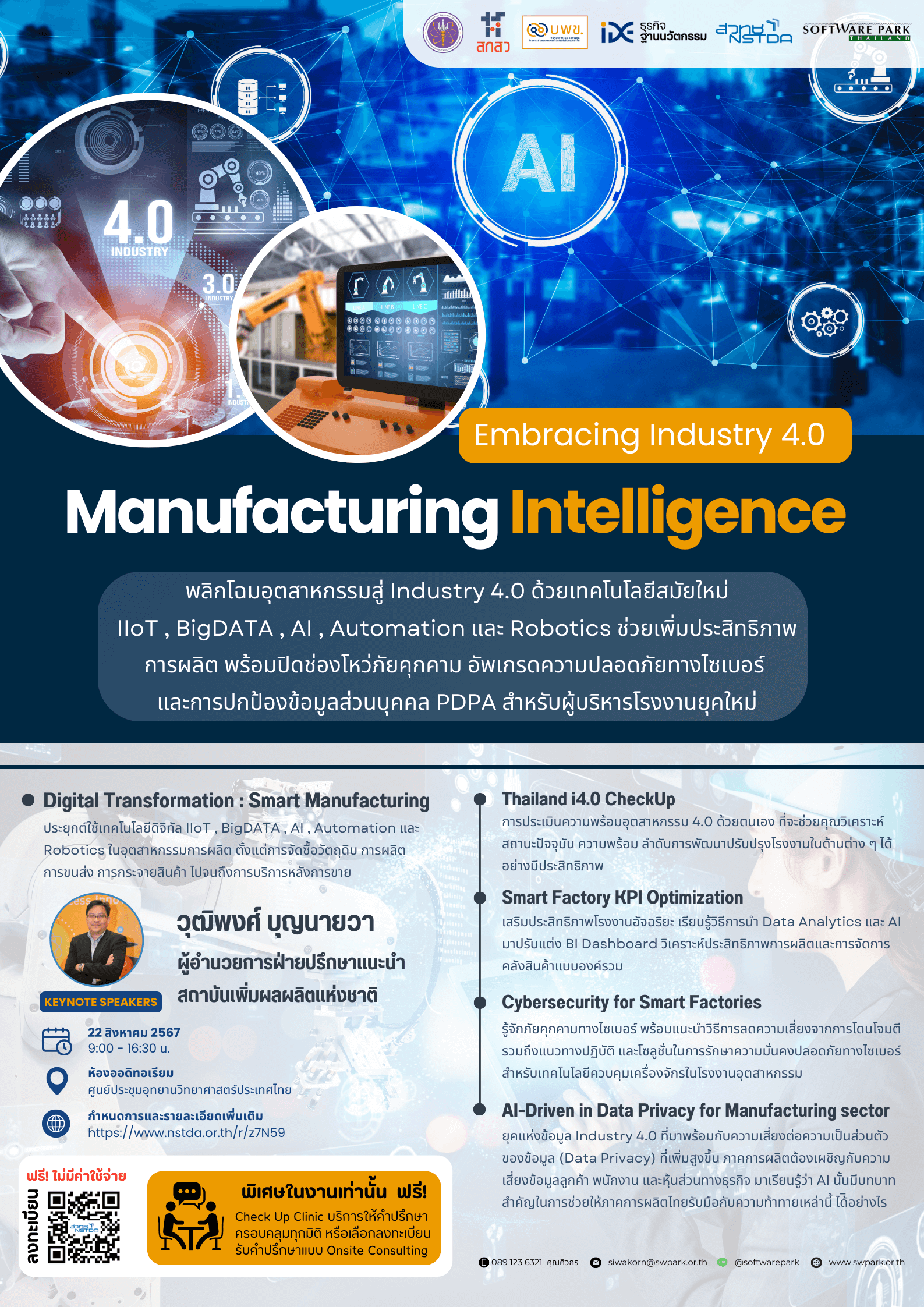 ขอเรียนเชิญท่าน เข้าร่วมงาน Embracing Industry 4.0 : Manufacturing Intelligence