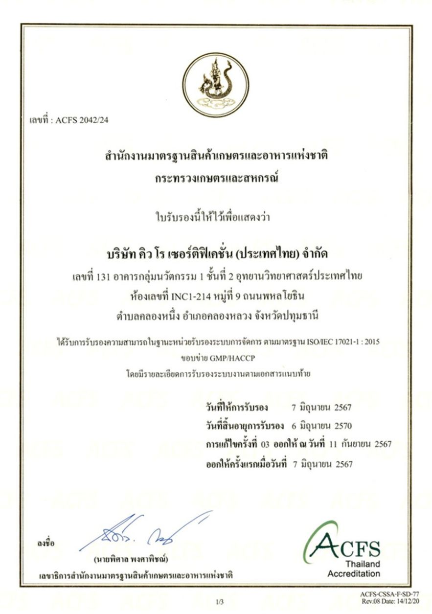 คิวโรฯ คือ 1 ใน 22 หน่วยรับรองมาตรฐาน (Certified Body) ที่ได้รับการรับรองจาก สำนักงานมาตรฐานสินค้าเกษตรและอาหารแห่งชาติ มกอช.